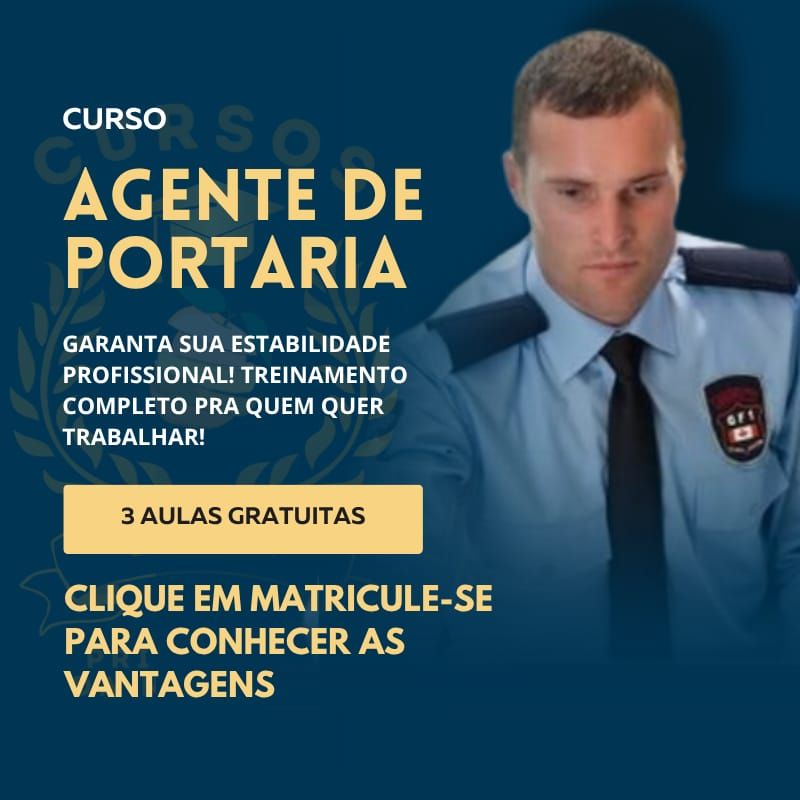 Quer se tornar um profissional valorizado e requisitado em condomínios, empresas e instituições? Com o Curso de Agente de Portaria, você vai aprender todas as técnicas essenciais para atuar com segurança, organização e eficiência.