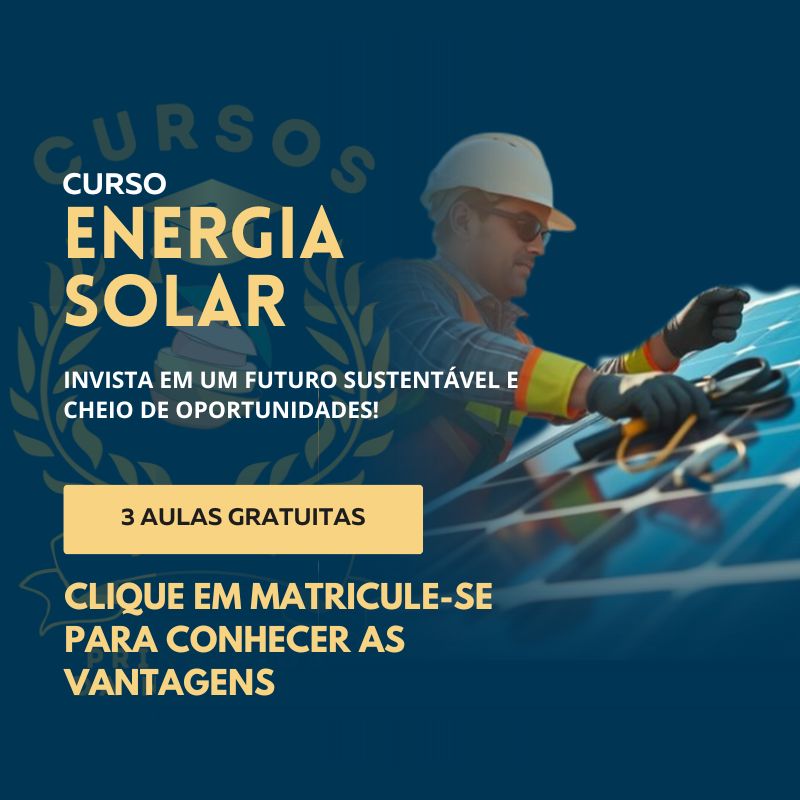 Invista no seu futuro com o Curso de Energia Solar e aprenda a atuar com segurança, eficiência e responsabilidade em sistemas fotovoltaicos!